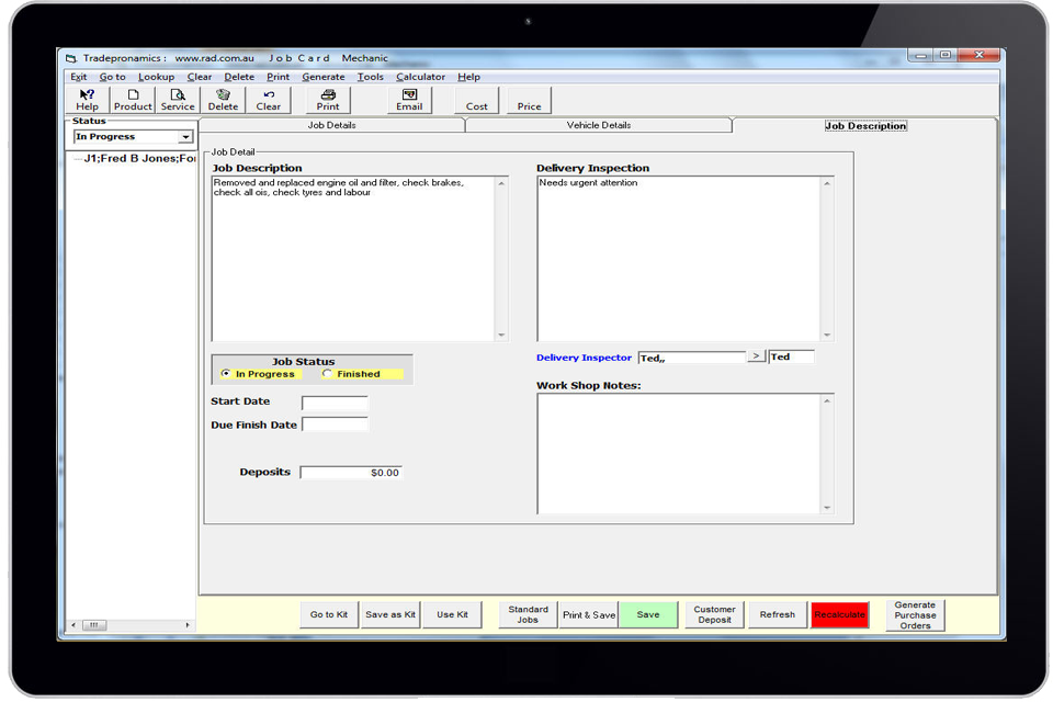 When you record an invoice, the stock is automatically updated. Recording an invoice also does your book keeping including but not limited to the GST reports, Profit and Loss, Next Service Reminder Letter, Customer Statements and many other standard business informational needs.